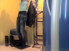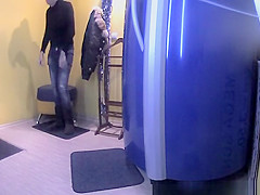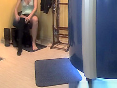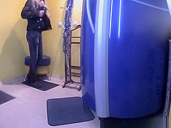 Lengthy hair blond takes off all her raiment for a tanning session. After her tanning session this babe dresses her garments.