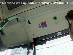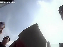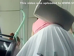 Hawt cutie with ponytail and short white petticoat has her precious butt and crotch upskirted in stairs and bus.