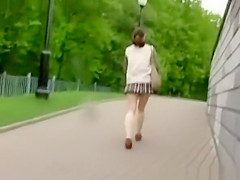 Angel in short petticoat wearing no pants upskirted in the stairs.
