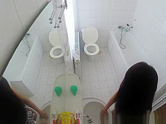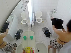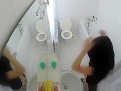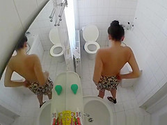 Hawt babe spied in washroom undressing and taking shower. After shower that babe dries her body and dresses her raiment.