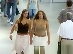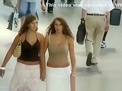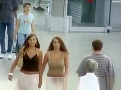 Excellent large bra buddies bushy hair legal age teenager walking on the street with her great melons bouncing all over her taut top.