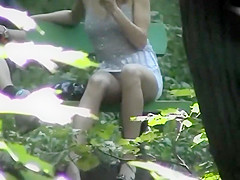 I think this sweetheart was quite interested in the boy that babe was sharing that park bench with. With him around this babe became very talkative and if we'll judge by the body language, open legs and touching him during conversation is the sign this babe wanted to hook up. Voyeur peeped on all of it, her upskirt as well.