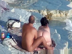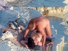 Older woman sucks on her stud's weenie by the shore. This Babe puts herself in position and acquires her snatch fingered in advance of getting screwed.