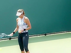 Tennis player wearing spandex panties