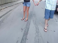 Breana in bitch gives face hole gagging bj in the outdoors