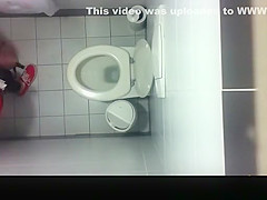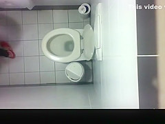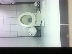 Spy camera in public water closet ceiling catches hotties pissing and cleaning their juicy cookies.