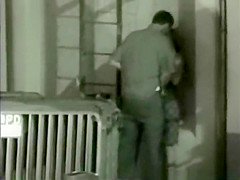 Nasty chap and a lustful floozy secretly filmed whilst having secret sex in the vacant corner of railway station at night time.