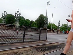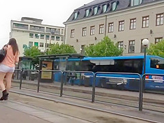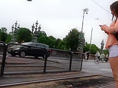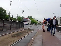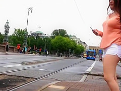I was expecting for the tram, same as this babe did, so I amused myself by filming her from a safe distance and zooming in on her curvy juvenile body. This Babe had a admirable little cameltoe forming in front of her shorts and appears to be it was a bit itchy, this babe scratches it a pair of times.
