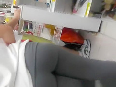 Description: Woman in constricted gray panties shopping in the local supermarket has worthwhile wazoo.