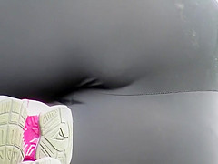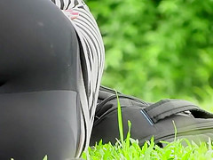 This hot chick was lying and chilling in the park in a sideways pose and that made her darksome tights stretch on her wazoo, giving it a admirable and clear firm form. Voyeur zoomed in on her and this chab found that her a-hole crack end in a cookie cameltoe on the front, just look at that cute thing.