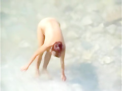 Hotty with plug in the a-hole positions for a lad at a public beach