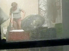 I guess this babe got these damn nets on the windows coz of the mosquito problems but the naive things just obstructed my view and got me urinated off. Still, I managed to film her youthful firm body with no larger issue and that babe didn't even know I'm doing it from the window.
