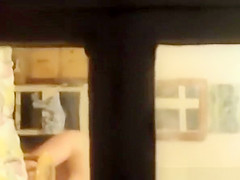 Description: Window voyeur spies neighbour in her bedroom looking for raiment.