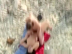 Corpulent fuck and cum on mounds at beach