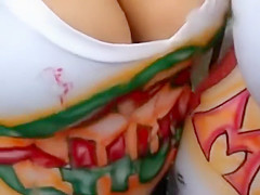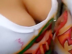 2 sexy sisters comparing their large milk cans