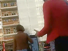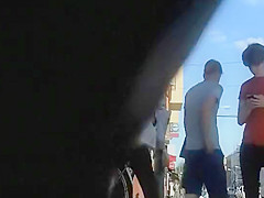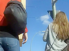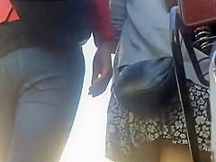 I think this beauty will be awfully constrained one time this babe realizes this babe's been inadvertently showing her bare wazoo out in the public. This Babe was walking on the street with her ally and her petite purse hooked up her petticoat, raising it above her ass cheeks. Mad hot and obvious that babe's wearing a miniature belt.