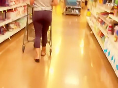 Supermarket can be joy, not just 'coz u're hungry and coz u're buying yourself a dinner. Voyeur lurked in there and discovered smth eatable, yet it afresh wasn't his dinner but a sexy babe in yoga panties, with such a priceless large butt, well meriting of a hard taste on behind.