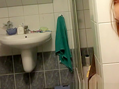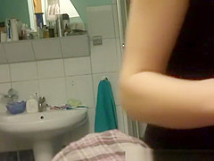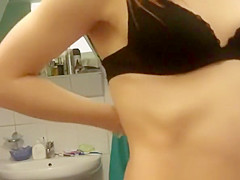 Redhead caught changing pants in bath and brushing her teeth. This Babe takes off her brassiere exposing her tiny whoppers to the hidden camera.