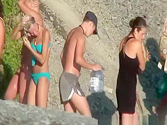 Lewd nudist gal sucks weenie from stranger boyz on t...