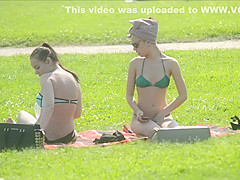 U are about to witness smth so extremely erotic like u wouldn't make no doubt of. Those 2 gals were chilling in the park and sunbathing, whilst voyeur zoomed in on the hotter cutie. That Babe was sitting on her heels in that strap bikini and her puckered anal opening was slipping out on the one and the other sides.