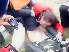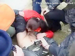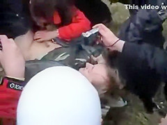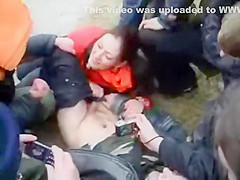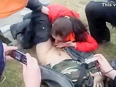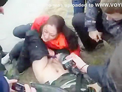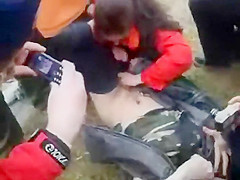 It usually happens the other way around but this time a woman was the one trying to receive into the panties of a defenseless dude. This Babe was playfully wrestling with him on the ground and trying to receive his pecker out, to put it in her throat. Other teenagers cheered and rooted on 'em.