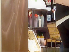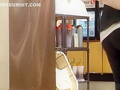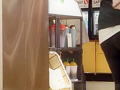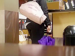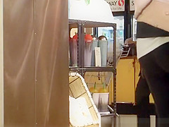 Corpulent arse getting coffee