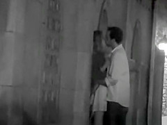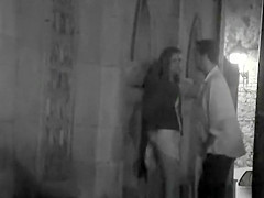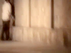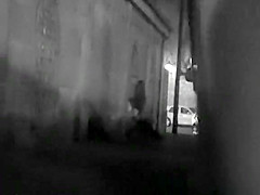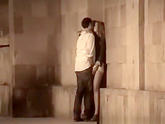 Boy fingers and kisses his girlfriend's cunt previous to this babe rides him in a darksome public street.