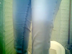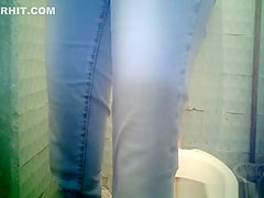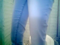 Diminutive bush woman peeing in crap-house