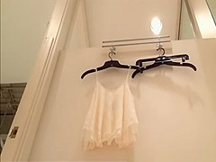 Brunette Hair honey with admirable arse spied in dressing room trying fresh raiment.