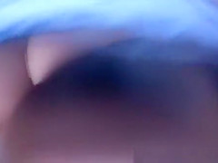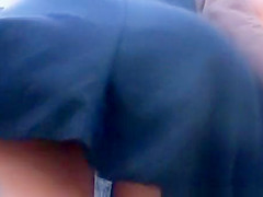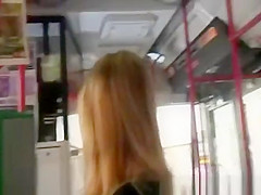 Sexy golden-haired in short darksome costume and sunglasses hawt upskirt on her pants and crotch in the bus and walking on the street.