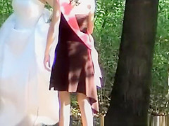 Bride and ally caught peeing outdoors