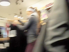 I don't know what sport that babe is into but it got her looking fit as fuck. I spotted her during the time that this babe was picking raiment in a store and I couldn't stop filming at her hawt figure. That black red color on her tights made her ideal firm butt indeed stand out, not to mention the hawt shirt with open stripped back.