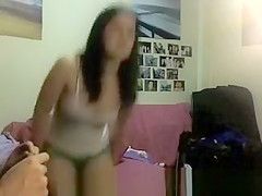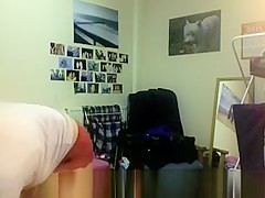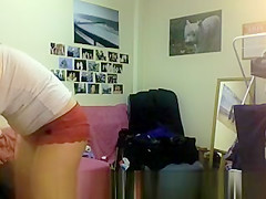 Cute brunette hair legal age teenager with great body caught changing pants and looking at the mirror to watch if they fit well.