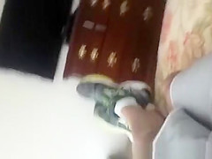 Wife taking off panties in bedroom