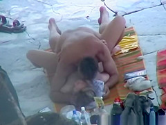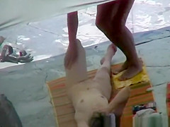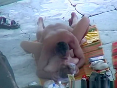 Diminutive titties aged nudist woman screwed missionary style by her dude in rocky beach.