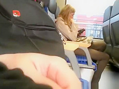 Lad films himself several times on different occasions taking his shlong out of panties and masturbating in teach with hotties next to him.