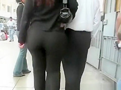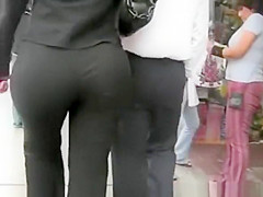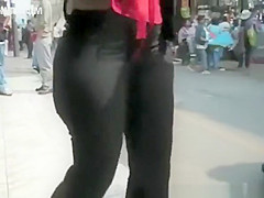 Description: Latin woman with large a-hole in constricted darksome panties walking with her spouse.