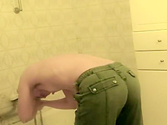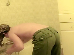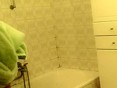 Teenage hotty bent over a baths tub