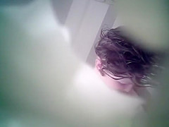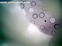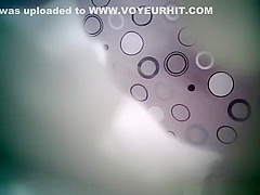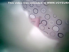 Spy camera in baths catches legal age teenager with miniature round love muffins undressing in advance of shower and drying her body after shower.