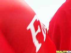 Alexis, Bobbie and Frenceska fantasy to engulf the biggest ducks of the champions of rally races! They disrobe their red costumes and started to gulp admirable rods! Have A Fun this priceless episode!