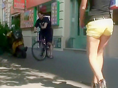 Voyeur started to secretly film her as in a short time as this chab spotted her. This Babe's a tanned leggy playgirl in yellow shorts that fit her beautiful wazoo in a flawless way. Expect for the voyeur to begin following her then u'll watch the odd haunches sway that babe got when this babe walks. Like that babe's been screwed in the a-hole just a minute agone.