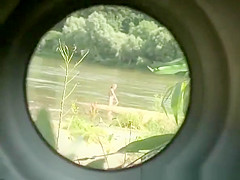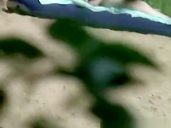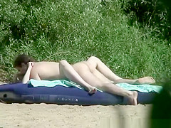 Naturist pair spied in the river shore having sex. That Babe sucks his 10-Pounder and this chab bonks her in different poses in air mattress.