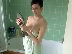Description: Towel eventually drops to expose outstanding left boob. Nip slide likewise.