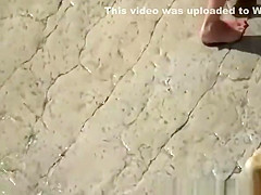 Wife strokes mans shlong in beach