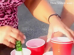 Aged woman playing beer pong