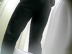 Aged woman squats over throne room to piddle. This Babe cleans her moist cookie and pulls up her pants and panties.