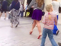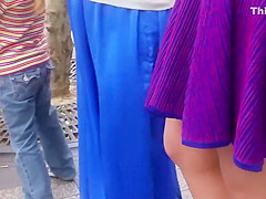 I don't know why her ally had such a lengthy alternative suit on and it's a pity 'coz this babe is too upskirt material. Still, I'm glad I had a chance to receive a decent upskirt look on the dark haired mother i'd like to fuck and that was my initial plan after all. Check out what's hiding beneath that purple petticoat.