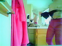Hawt wife was still in the baths, freshly showered and getting clothed into her abode attire. These granny style pants doesn't do her body justice cuz that babe would look very impressive in smth sexier. Still, worthy sufficiently for hanging out at home I suppose.
