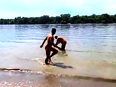 Hotty with plug in the a-hole positions for a lad at a public beach