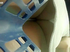 Spy camera in supermarket basket secretly films babes's butts and pants underneath their short dresses.
